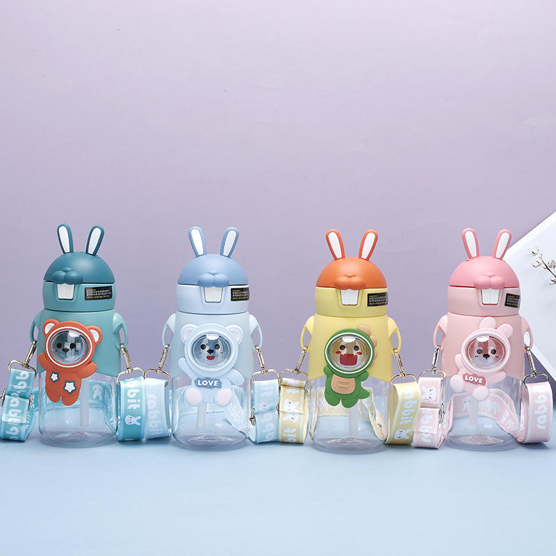 Cute and stylish bunny space capsule plastic cup for outdoor use with a straw