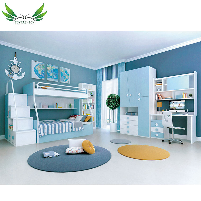 This kids bunk bed is made from environmental protection melamine board, ensuring safety and durability. It features a modern and fantastic design style, making it ideal for primary school children and home use.
