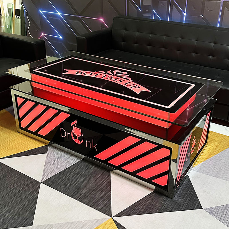This KTV Coffee Table features multicolor LED lighting, crafted from high-quality stainless steel, tempered glass, and premium hardware components. It combines modern simplicity with durability, ensuring stability and resistance to deformation over time.
