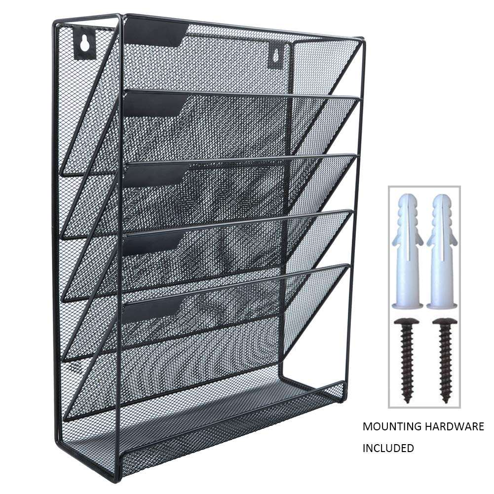 Mesh Wall Mount Magazine Rack A4 Newspaper Stand Metal Catalogue Holder Basket