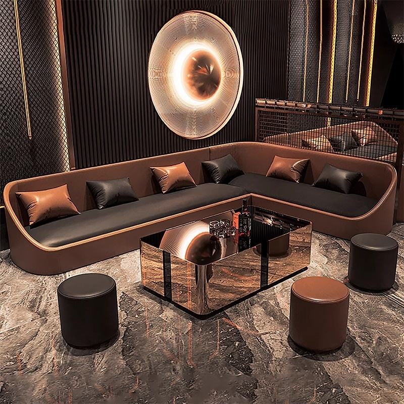 This modern commercial solid wood KTV sofa cafe booth table chair combination is designed for versatile use in bars, restaurants, hotels, and outdoor spaces. Made with a durable solid wood style and iron frame material, it ensures longevity and stability. The product supports customization options such as brand, logo, color, and packaging, making it ideal for business branding needs.