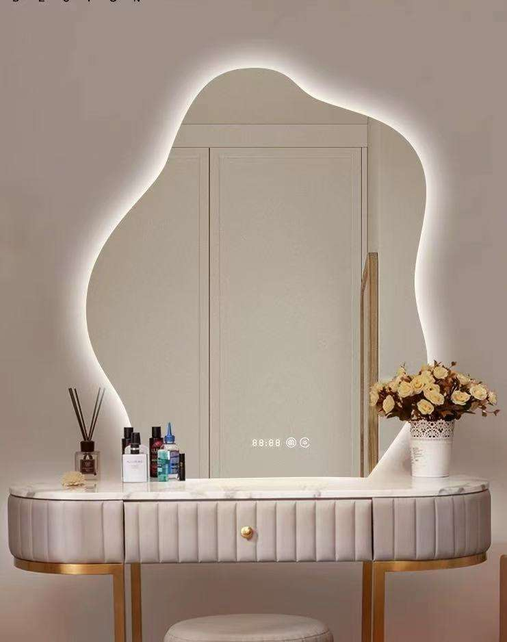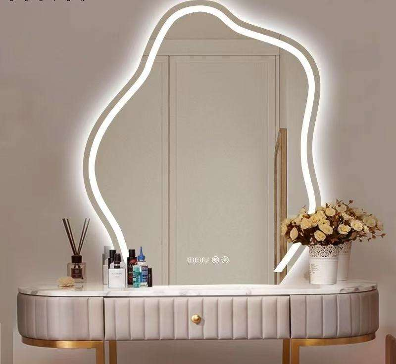 Modern touch switch asymmetrical irregular LED wall mirror anti-fog