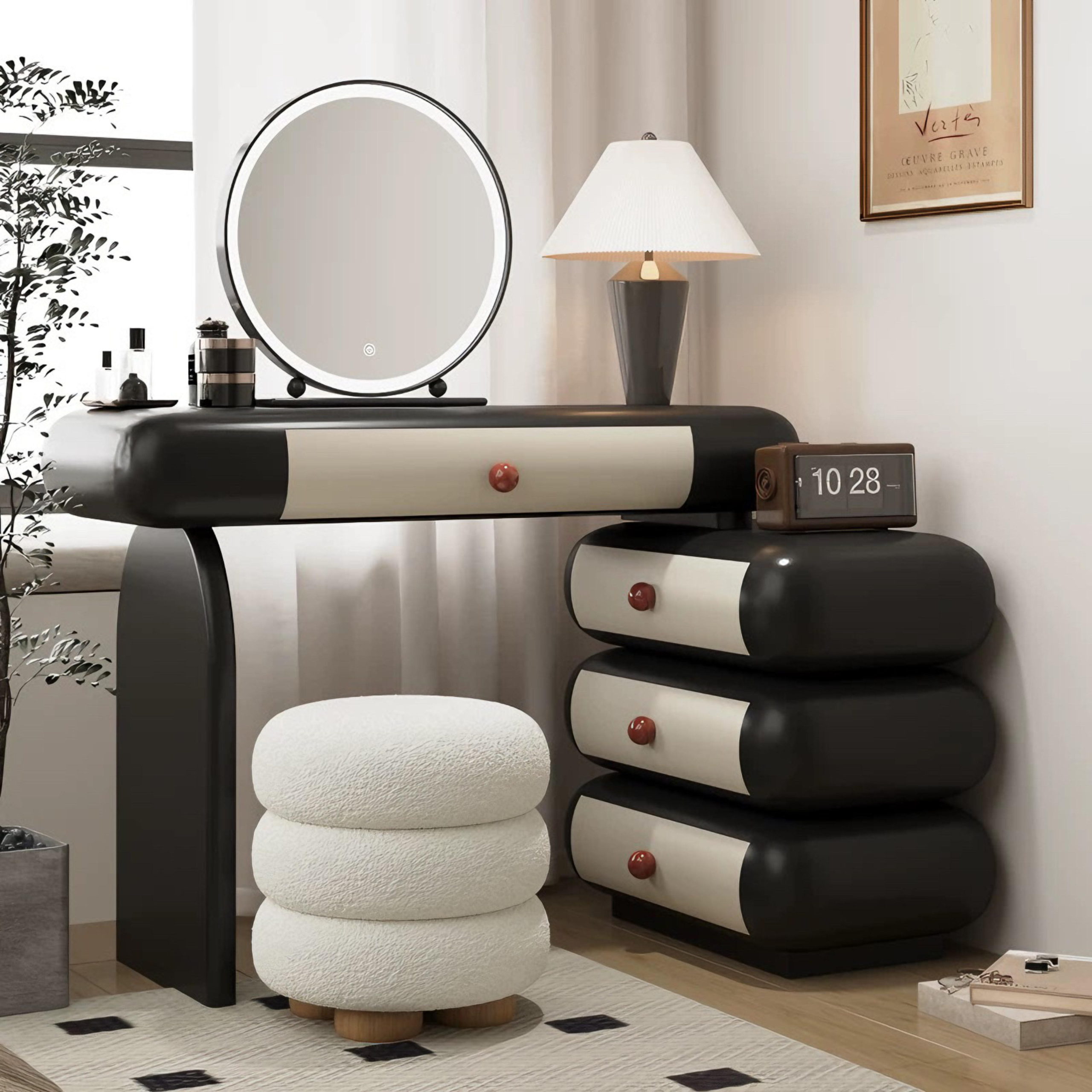 Retro light-luxury mid-century-inspired dressing table solid wood with integrated drawers