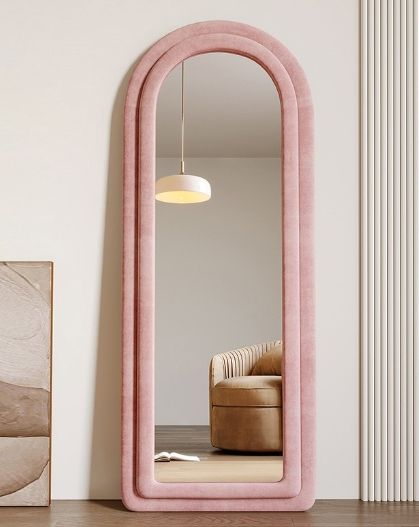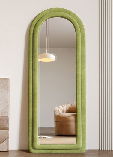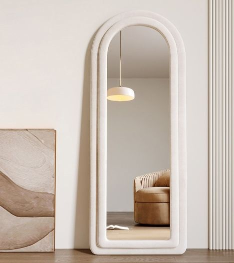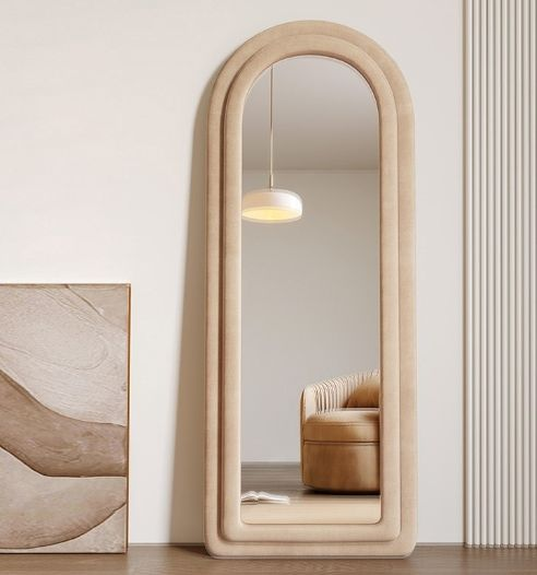 Super Markets E-commerce Stores Arch Grey Fabric MDF Wood Wall Floor Mirror